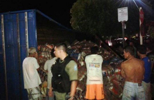 Policiais militares da cidade de Piripiri, cidade localizada a 180 km de Teresina, foram chamados na noite de segunda-feira (09/01) para evitar o saqueamento de uma carga de arroz de um caminhão que tombou no centro da cidade.
