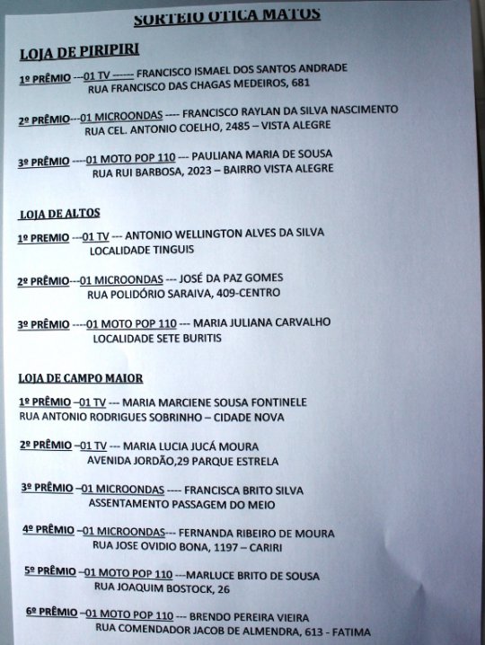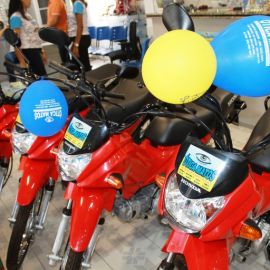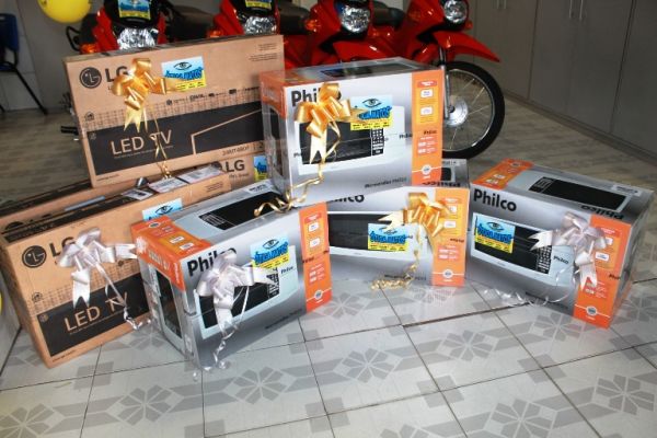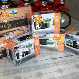 Foram sorteados uma TV, um micro-ondas e uma moto pra Altos, uma TV, um micro-ondas e uma moto pra Piripiri e pra Campo Maior foram sorteados dois micro-ondas, duas TVs e duas motos Honda Pop.