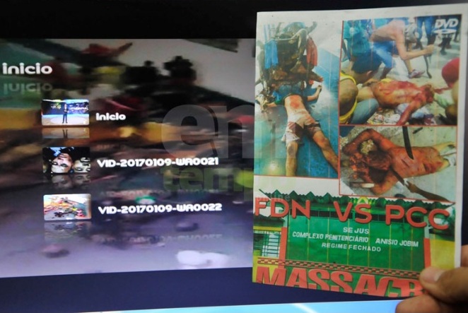 Intitulado ‘FDN x PCC – o massacre’, o DVD possui oito vídeos – já amplamente replicados nas redes sociais no período da crise no sistema prisional do Estado. No produto, apenas um dos vídeos não é inédito e não está vinculado a nenhuma rebelião que aconteceu nas unidades prisionais da cidade.
