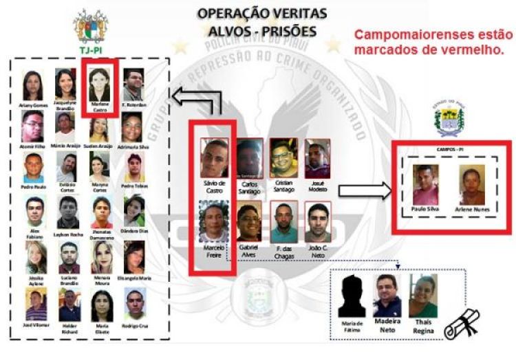 À época, a Operação Véritas identificou que cinco pessoas de Campo Maior participavam dos fraudes da quadrilha liderada por Cristhian. Em março, foram presos no município: Sávio de Castro Leite, Marlene Castro de Sousa, Paulo Silva de Sousa, Marcelo Freire e Arlene Nunes Machado.
