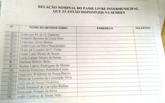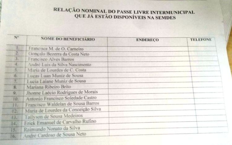 A Secretaria Municipal de Desenvolvimento Social e Transferência de Renda (SEMDES) divulgou a relação de beneficiados com o passe livre intermunicipal.