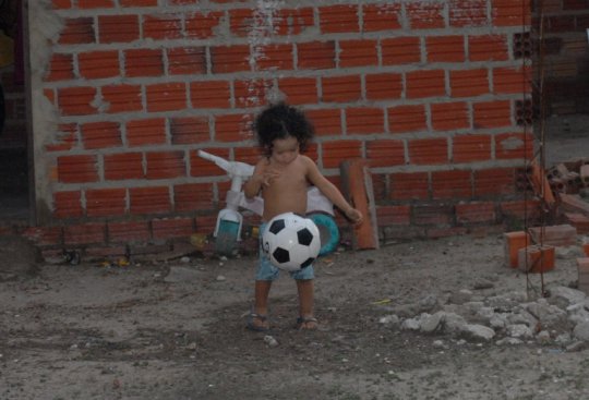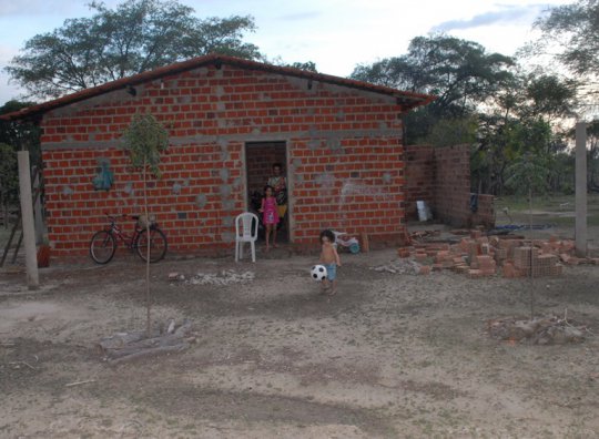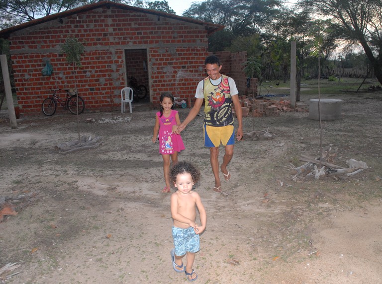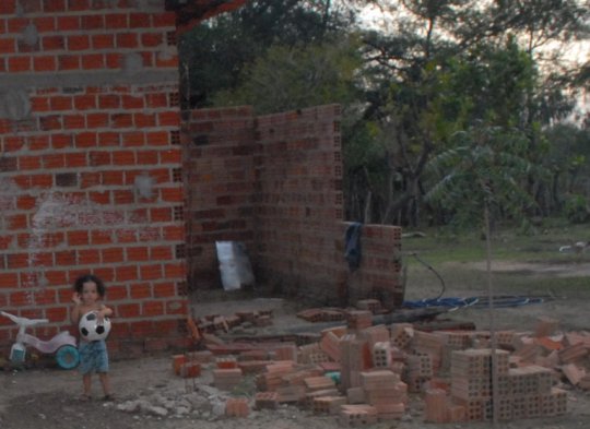 Casa dos pais das crianças. Um puxado para ofercer mais espaço às crianças, acabou de cair. Ao fundo o banheiro inacabado, que serve para toda a família
