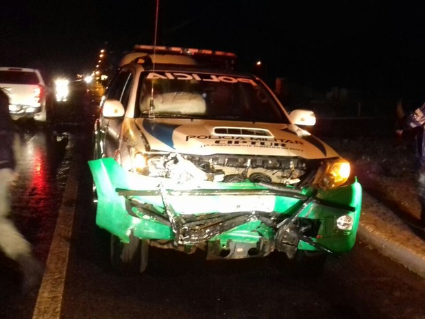 Ainda de acordo com o capitão, no momento do acidente chovia bastante. Quatro policiais estavam na viatura e apenas um deles teve um corte no rosto. Já o carro de passeio transportava três pessoas, incluindo o motorista que sofreu uma pancada forte na região do tórax.