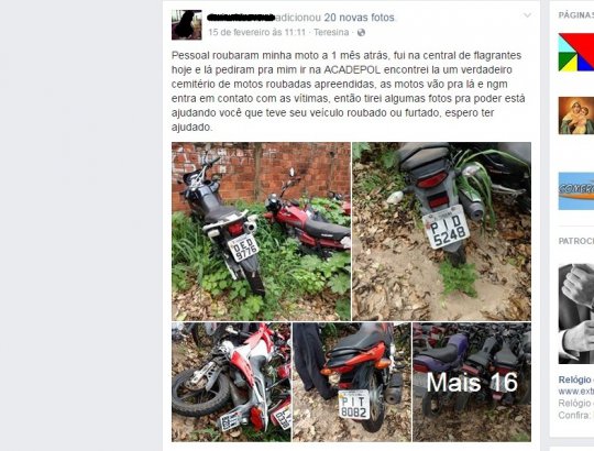 As fotos foram divulgadas nas redes socias por uma pessoa que teve a sua motocicleta roubada há um mês e foi na Central de Flagrantes, sendo aconselhado a procurar no pátio ao lado da ACADEPOL. São centenas de motos e alguns carrosque já estão cobertas pelo mato. Algumas motocicletas estão tombadas sobre outras. As placas dos veículos são de várias cidades do Piauí e até de outros estados.