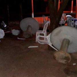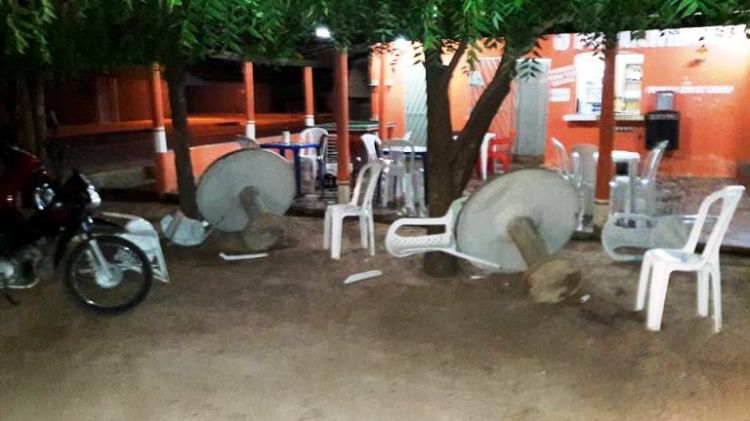 O carro era um Logan de placa OUB-4847 de Teresina de cor prata que quebrou cadeiras de plástico, mesas de concreto e ainda bateu na moto de um cliente quebrando a carenagem e amassando a placa.