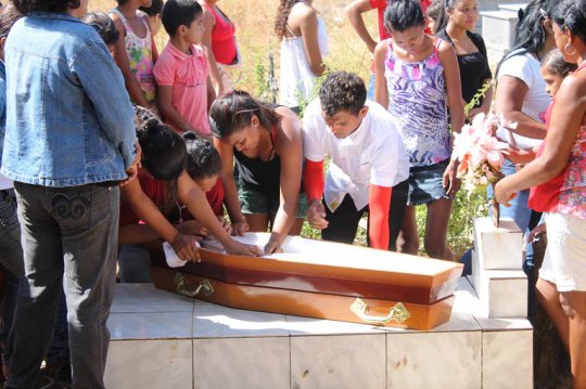 Sob prantos, como??o?e muita revolta familiares e?amigos da pequena Sara Valentina Alves Nascimento deram o ?ltimo adeus ??crian?a na manh? desta quarta-feira (02/09) no Cemit?rio do Bairro Cidade Nova em Campo Maior. Os pais, Eliane e Jorge, ainda em estado de choque, n?o tiveram condi??es emocionais de participar do enterro da filha. Sara morreu na manh? de ontem no Hospital Regional de Campo Maior no momento em que recebeu uma medica??o.