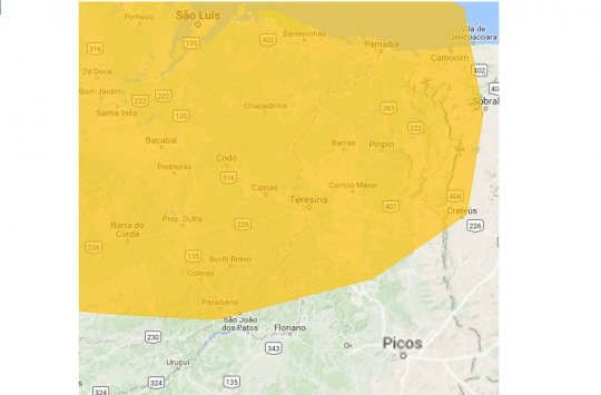 O Instituto Nacional de Pesquisas Espaciais (INPE) emitiu alerta para toda região dos carnaubais. O aviso chama atenção para as chuvas intensas durante toda esta segunda-feira.