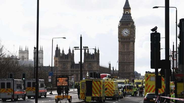 O ataque ocorreu na região da ponte de Westminster, onde um carro em alta velocidade subiu na calçada e atropelou várias pessoas antes de colidir contra a grade nas cercanias do Parlamento. Um homem com uma faca saiu do veículo e tentou entrar correndo no prédio. Ele esfaqueou um policial que não estava armado e foi atingido por tiros disparados pela polícia.