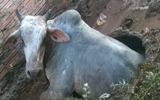 A vaca perambulava pelo Centro da cidade, quando pisou na fossa que não resistiu o seu peso e acabou despencando precisando ser resgatado de dentro da fossa com a ajuda de uma retroescavadeira. A vaca ainda quebrou vários canos no local, causando prejuízos ao proprietário da residência identificado por Buda.