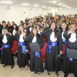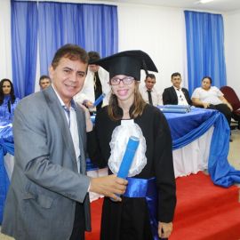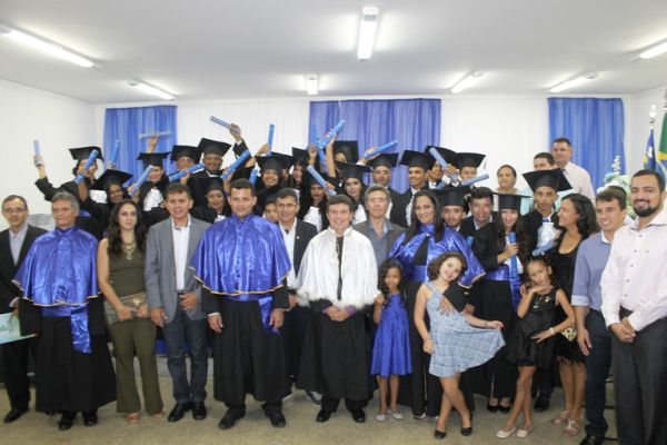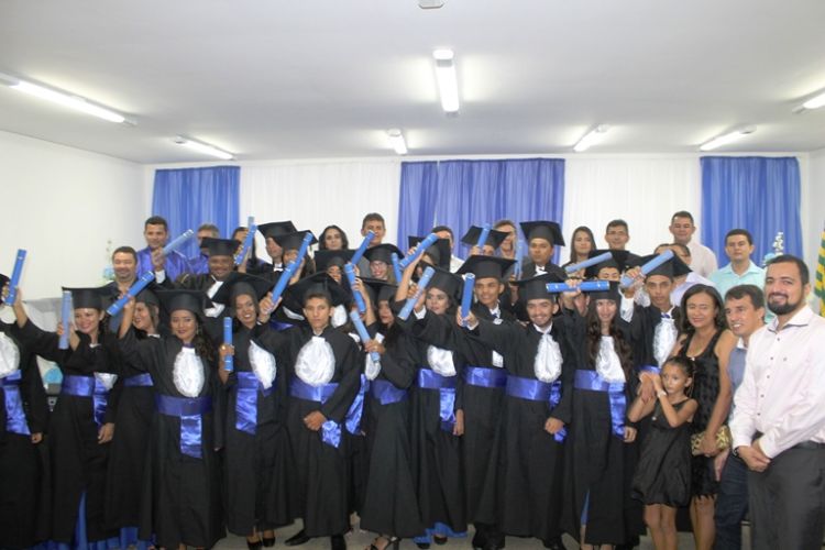Os alunos receberam seus diplomas e comemoraram a conquista. O destaque da turma foi a grande quantidade de mulheres.