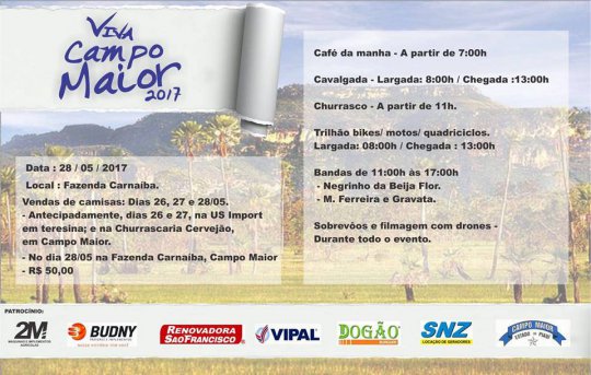 O projeto VIVA CAMPO MAIOR, que já se encontra tradicionalmente no calendário festivo de Campo Maior, anuncia sua edição 2017 e promete surpreender ainda mais os participantes deste ano.