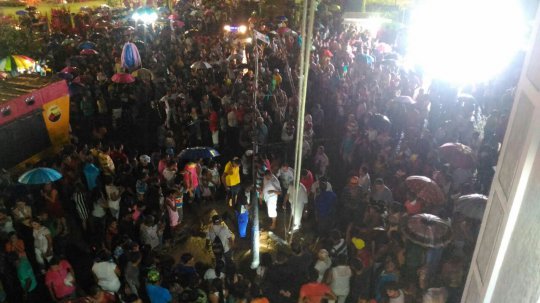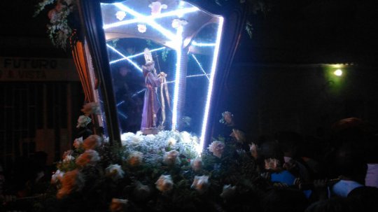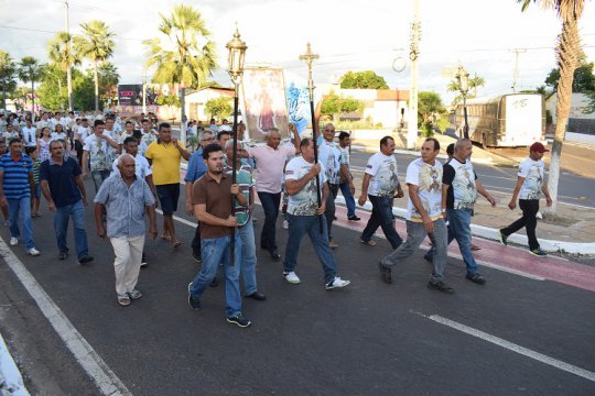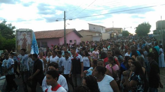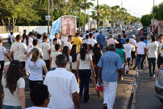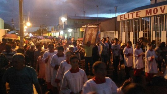 A procissão passa pela rodoviária, entra pela rua Siqueira Campos, onde o trajeto e mais estreito.