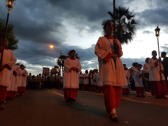 A multidão de fiéis descem do Colégio Patronato com destino a Avenida Santo Antônio