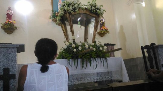 A capela de Nossa Senhora de Lourdes, no Colégio Patronato tem as postas abertas para receber os fiéis. Orações, pedidos e agradecimentos são feitos pelos Católicos no local de onde parte a procissão logo mais.