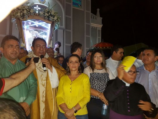 Autoridades políticas seguem à procissão. O prefeito de Campo Maior, Professor Ribinha, os deputados estaduais Antônio Félix, Aluísio Martins, Marden Menezes e o presidente da Fundespi Paulo Martins.