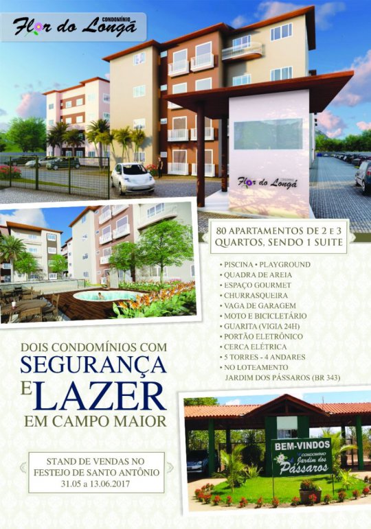 O loteamento Jardins dos Pássaros, que já é considerado como um dos melhores centros residenciais dentro do município de Campo Maior, lança agora o condomínio Flor do Longá que promete trazer ainda mais conforto e lazer aos campo-maiorenses.