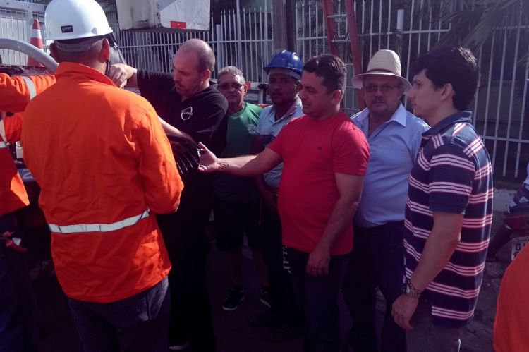Depois de testada e aprovada, a equipe responsável seguiu para a Praça Bona Primo, onde foi dado continuidade ao serviço entrando até no periodo dada noite