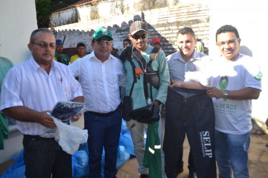 A solenidade de entrega aconteceu no pátio da Secretária de limpeza, e contou com a presença do Prefeito Municipal, Professor Ribinha, Secretário Antônio Lustosa, o técnico em segurança do trabalho, Denis Ibiapina, e funcionários.