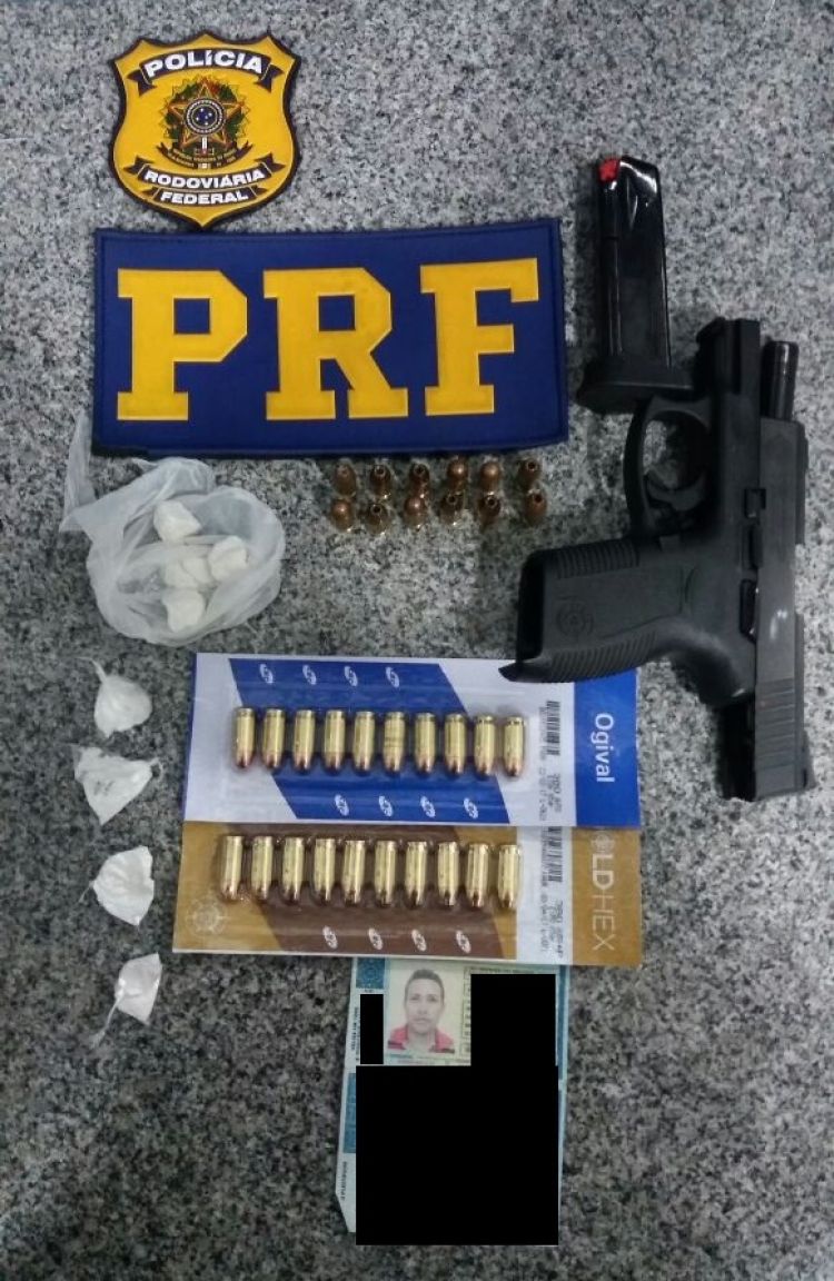 A Polícia Rodoviária Federal prendeu um homem (F.C.S.S-34anos) por porte ilegal de arma e drogas na BR-343, km 269, no Município de Campo Maior/PI na noite desta segunda-feira (12).