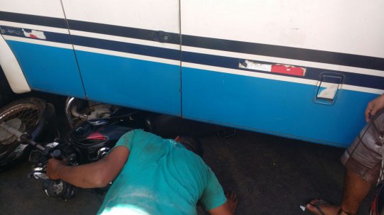 Como consequência de sua atitude, Kassio pôde salvar sua vida, mas a moto, que foi arrastada para debaixo do ônibus, ficou bastante avariada.