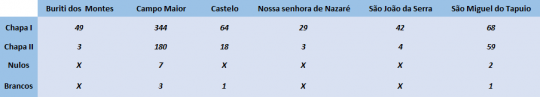 A votação, que se iniciou ontem (19) por volta das 8h00m e só foi finalizada às 21h00min ocorreu de forma tranquila e ininterrupta, atingindo seu pico de votantes pelo final da tarde na cidade de Campo Maior e nos municípios de Buriti dos Montes, Castelo, São João da Serra, São Miguel do Tapuio e Nossa Senhora de Nazaré que fizeram questão de demonstrar seu apoio às chapas concorrentes.