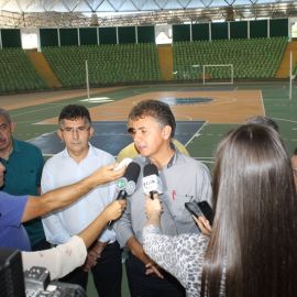“A parte da obra [de engenharia] que custou mais de R$ 4 milhões já está concluída, estamos na parte dos equipamentos. Viemos in loco vistoriar a parte de engenharia. Uma obra fantástica, muito bela. Vamos tratar com o governador uma data para inaugurar. Mas para isso precisa dos equipamentos. Já começamos as cortinas de vidro para proteger o torcedor. Vamos tratar de apressar com a empresa para que possa colocar aqui todas as modalidades como basquete, handboll, voleibol, futsal e que tenha condição de receber qualquer time do Brasil como também shows artísticos”, ressaltou o Presidente.