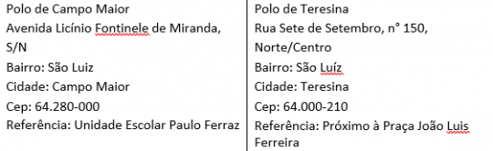 As provas para o processo seletivo do curso Técnico de nível Médio em Agronegócio do SENAR acontecerão nos endereços dos polos de apoio presencial discriminados na tabela abaixo, no período de 05/07/2017 a 21/07/2017.