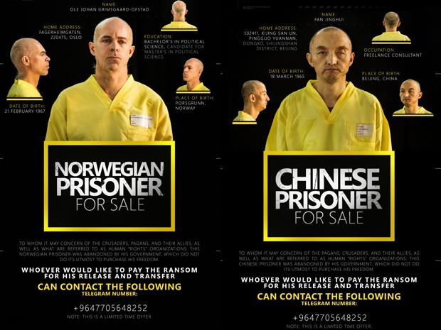 O grupo não especificou nem onde nem como os sequestrados foram capturados, nem deu informações sobre o local de sua detenção. No anúncio, os reféns são identificados como o norueguês Ole Johan Grimsgaard-Ofstad, de 48 anos, de Oslo, e o chinês Fan Jinghui, de 50 anos, de Pequim.