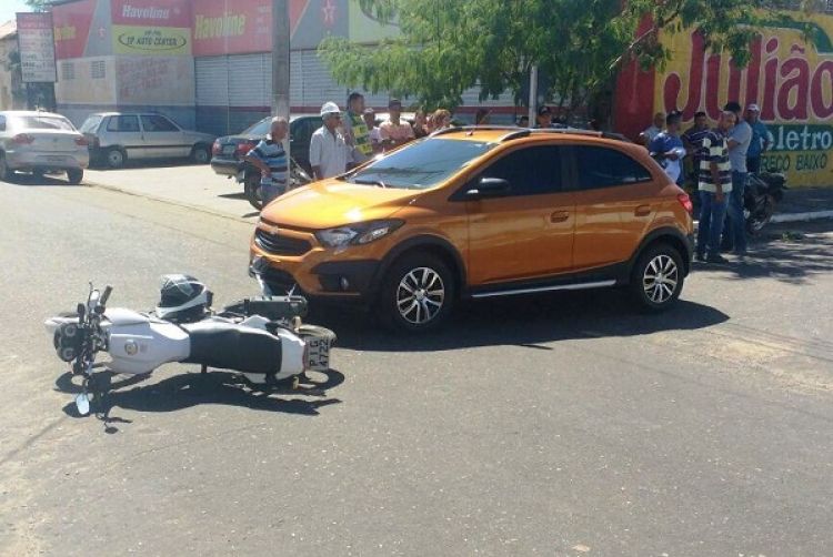 Um acidente no cruzamento da Avenida Siqueira Campos com a Rua Aldemar Mendes, próximo a 5ª Gerência Regional de Educação, no centro de Campo Maior, deixou um motociclista com grave lesão na manhã desta quarta-feira (19/07).