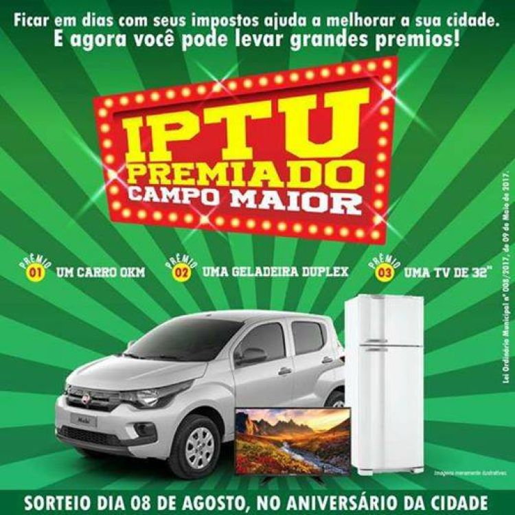 O projeto IPTU premiado, elaborado e organizado pela prefeitura municipal e pela secretaria de fazenda do município de Campo Maior é considerado hoje como um dos projetos mais inovadores e eficientes e premiará os ganhadores com um veículo 0 km, uma geladeira e um televisor de LED de 32 polegadas. Para falar sobre o assunto, a redação do portal Campo Maior em Foco entrevistou o articulador da campanha no município, Jean Charles, para um bate-papo visando esclarecer as principais dúvidas da população sobre o tema.