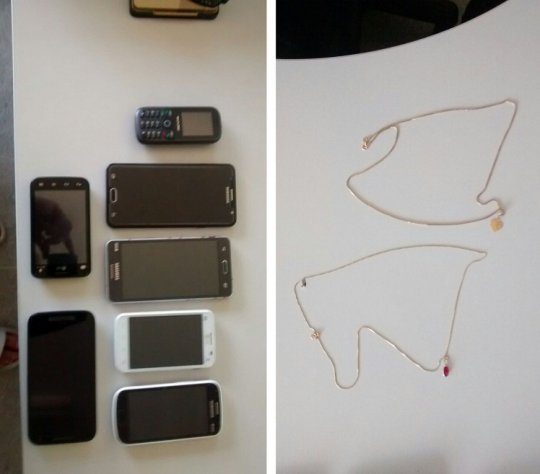 A inteligência da polícia descobriu que o crime foi realizado Leonardo de Jesus Rocha e Carlos Eduardo Soares. A dupla usou uma arma de fogo para render as vítimas e fugir levando celulares, dinheiro e colares de ouro. Após o assalto, os produtos foram repassados a dois receptadores.