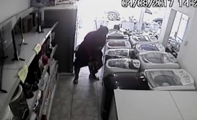 Uma mulher furtou uma televisão de uma loja de eletrodomésticos e esconder o aparelho debaixo de uma saia, na cidade de Presidente Tancredo Neves, no baixo sul da Bahia, de acordo com a Polícia Civil. As câmeras de segurança do estabelecimento flagraram a ação.