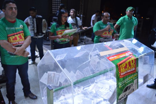 Leide Maria não estava no momento do sorteio, mas o marido da sorteada recebeu das mãos do prefeito Professor Ribinha a chave do carro modelo Up. A professora foi comunicada do prêmio pelo próprio prefeito, que ligou para os felizardos. A promoção sorteou ainda uma geladeira e um aparelho de televisão.