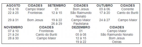 O Detran-PI estará em Campo Maior nos próximos quatro meses com a realização de exames práticos para novos condutores. As datas estão no cronograma divulgado pelo órgão de estadual de trânsito. As cidades de Fronteiras, Bom Jesus, São Raimundo Nonato, Paulistana, Canto do Buriti e Oeiras também foram contempladas.