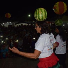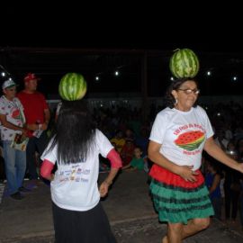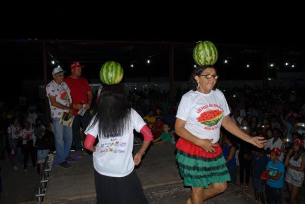 A tradicional dança das melancias foi um show à parte. Muita irreverência e gingado foram os ingredientes principais desta mistura. Neste ano, apenas duas concorrentes participaram da competição, a Dona Socorro Pinheiro, que participa do concurso desde 2009 e se orgulha em falar que foi campeã em todas as vezes que participou. Quando perguntada se este ano seria diferente, Dona Socorro deu um belo sorriso e disse, confiante, que ganharia novamente.