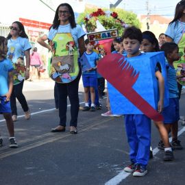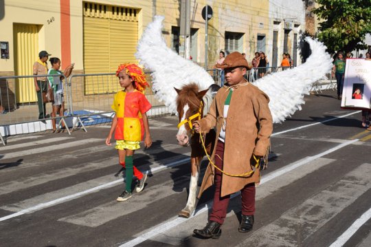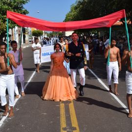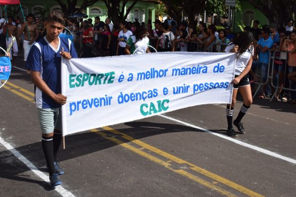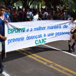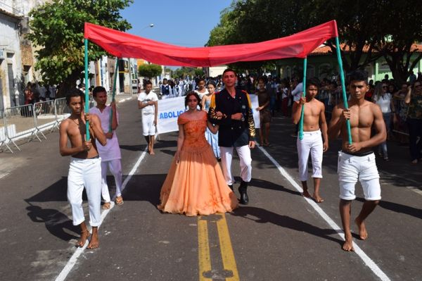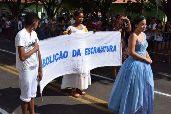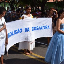 Já os alunos do CAIC desfilaram com a temática da abolição da escravatura. Na avenida apareceram representação de escravos e de Dom Pedro e a imperatriz Maria Leopodina. A apresentação das tropas do Tiro de Guerra e do 15ª Batalhão da Polícia Militar encerrou a programação.