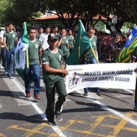 Um Desfile Cívico marcou as comemorações da Independência em Campo Maior nesta quinta-feira (07/09). Ao todo, 25 instituições - dentre elas escolas, movimentos sociais, exército e polícia militar - participaram da solenidade realizada na Avenida José Paulino, no centro.