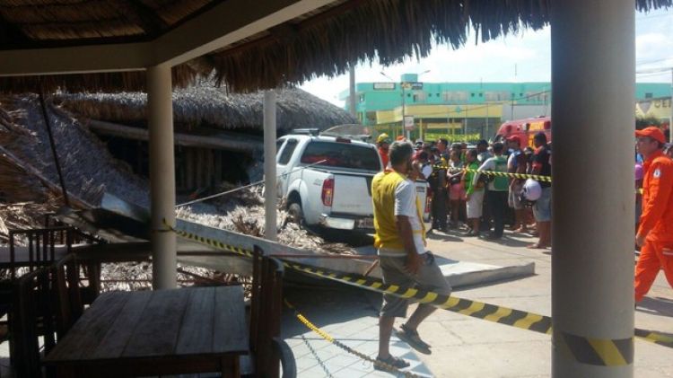 Parte da cobertura do restaurante caiu com o impacto. As duas pessoas que estavam dentro do estabelecimento identificadas como José Ribamar dos Santos, 65 anos, e Daniel dos Santos Sales, 28 anos, ficaram feridas.