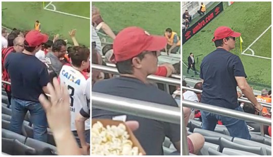 “Ele estava na minha frente. Comecei a perceber a aparência daquele homem com o Sergio Moro, mesmo ele estando de chapéu e óculos. Depois tive a confirmação que era ele”, disse Weslley. Nas imagens divulgadas pelo jornalista, o juiz aparece no meio do torcedor acompanhado de um dos filhos.