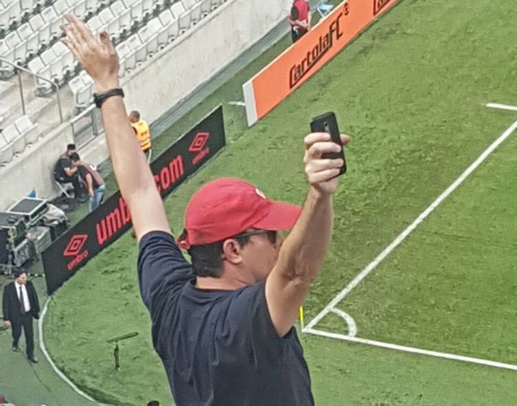 “Ele se posicionou no meio do torcedor com o filho. Na imagem que ele aparece em pé estava acenando pro filho que tinha ido comprar algo para comer. Mas se levantou como toda a torcida no momento do segundo gol do atlético”, relata. “Algumas pessoas depois de perceberem tentaram tirar foto com ele, mas ele recusou”.