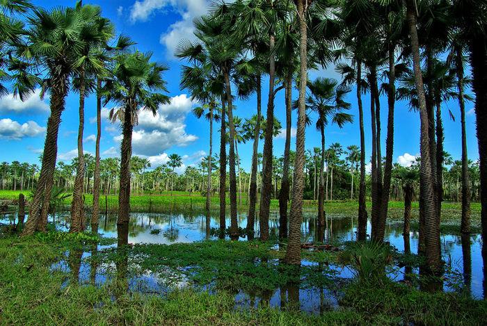 A Carnaúba (Copernicia prunifera) é nativa do Brasil e está mais presente nas regiões norte, principalmente em Tocantins, centro-oeste, em Mato Grosso, e em todos os estados do nordeste. Ela é uma planta perene, heliófila com um tronco simples, ereto, com numerosas folhas no seu topo. Suas folhas são em forma de leque, palmadas, cor cinza-esverdeada e cerosa na face inferior.