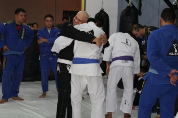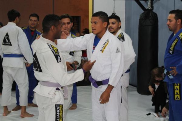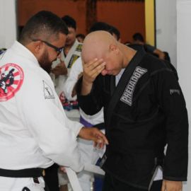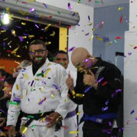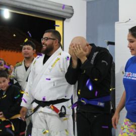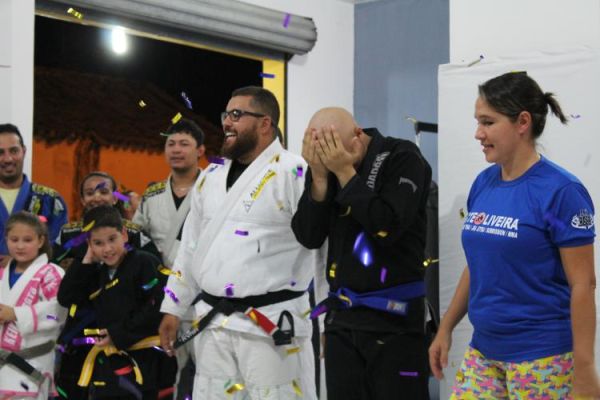 Eduardo Oliveira também contou a história emocionante de um aluno do centro que há algum tempo foi obrigado a se afastar do esporte por um grave problema de saúde. Emocionado, ele conta que há pouco tempo recebeu a feliz notícia que o citado estava curado da doença e estaria voltando a praticar o esporte que tanto ama. Para sua surpresa, o aluno, que estava presente na inauguração, recebeu a faixa azul de graduação, o que fez a emoção de todos os presentes transbordar.