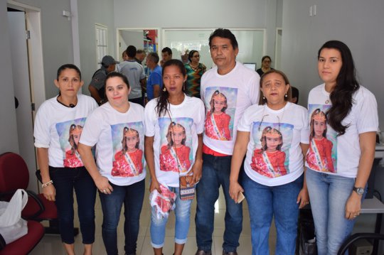 Membros do Conselho Tutelar de Campo Maior, familiares e representantes de entidades sociais usam camisas com a imagem de Franciele da Silva Santos em forma de protesto.