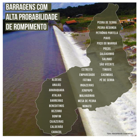 Um estudo da Agência Nacional de Águas (ANA) mostra que a Barragem do Emparedado, em Campo Maior, apresenta alto risco de rompimento. O Relatório de Segurança de Barragens (RSB) analisou 35 reservatórios no Piauí. Deles, 33 entraram na lista de alto risco de rompimento por apresentarem problemas em suas estruturas.