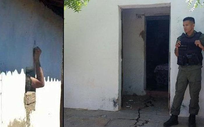 A Polícia Militar se deslocou até o local e encontrou o homem preso dentro de um buraco feito na parede da casa. Ainda não se sabe o que teria motivado o Sr. Antônio a tentar atravessar o buraco.