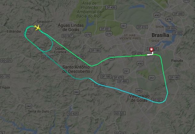 Durante a trajetória, o voo Avianca 6065 precisou fazer uma volta completa enquanto sobrevoava a área de Edilândia, em Goiás.