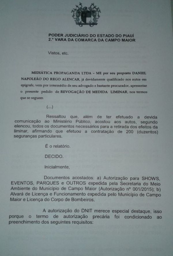 O organizador do evento, Daniel Alencar, apresentou toda a documentação solicitada pela justiça na noite desta quinta-feira e o juiz revogou a liminar. O DNIT expediu o alvará, mas com algumas exigências que se não forem cumpridas, segundo disse o juiz na revogação, o evento poderá ser suspenso novamente.