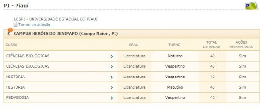 Em Campo Maior, apenas o campus Heróis do Jenipapo, da Universidade Estadual do Piauí, participa da seleção. São ofertadas 200 vagas nos cursos Licenciatura em História, Licenciatura em Biologia e Licenciatura em Pedagogia.