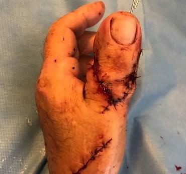 Um paciente que sofreu acidente de trabalho em junho teve o dedão de um dos pés implantado no lugar do polegar esquerdo, que ele perdera.