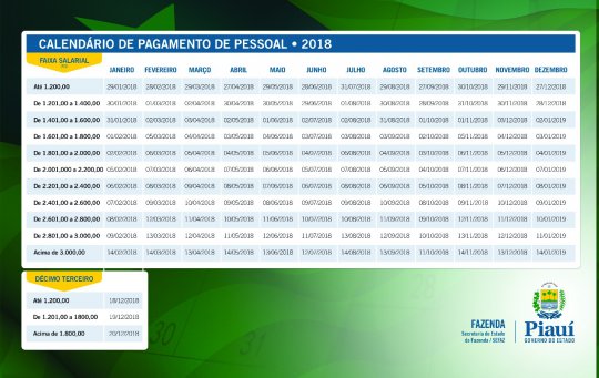 ?A equipe econ?mica do governo recomendou que a tabela permanecesse no mesmo padr?o, com a mesma quantidade de faixas, iniciando no pen?ltimo dia de cada m?s e se estendendo, mais ou menos, at? o oitavo dia ?til do m?s subsequente. Portanto, continua a mesma quantidade de faixas, sendo esta tabela muito semelhante a de 2017, pois seria muito temoroso anteciparmos com a crise econ?mica ainda persistindo em nosso pa?s. A prud?ncia recomenda a manuten??o da tabela nos moldes que estamos?, enfatiza Rafael Fonteles. ?
